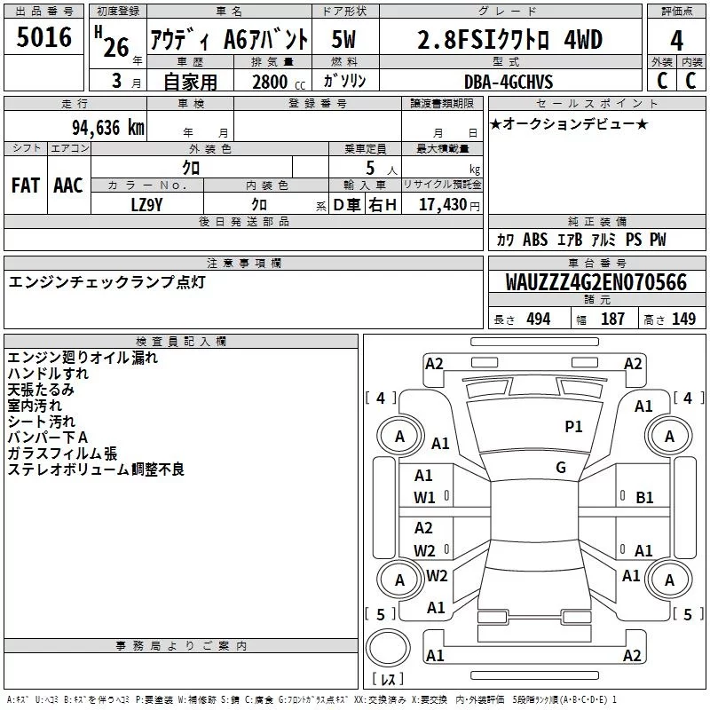 AUDI A6 Черный 2800 см3 2014 год