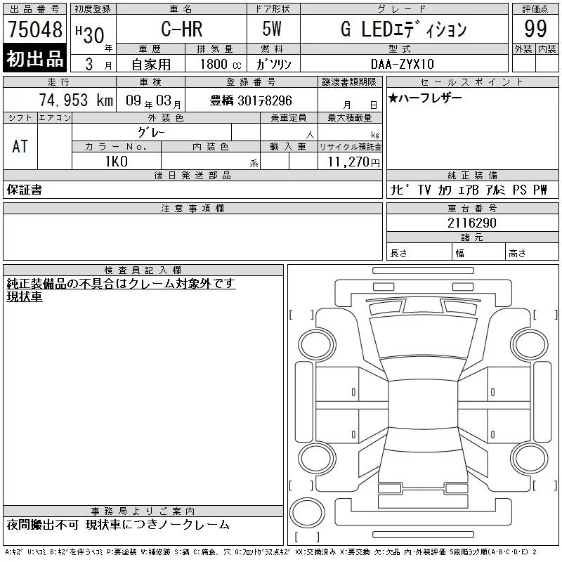 TOYOTA C-HR Серый 1800 см3 2018 год
