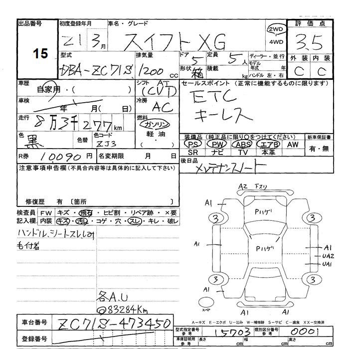 SUZUKI SWIFT ZC71S ZC71S | 2009 год