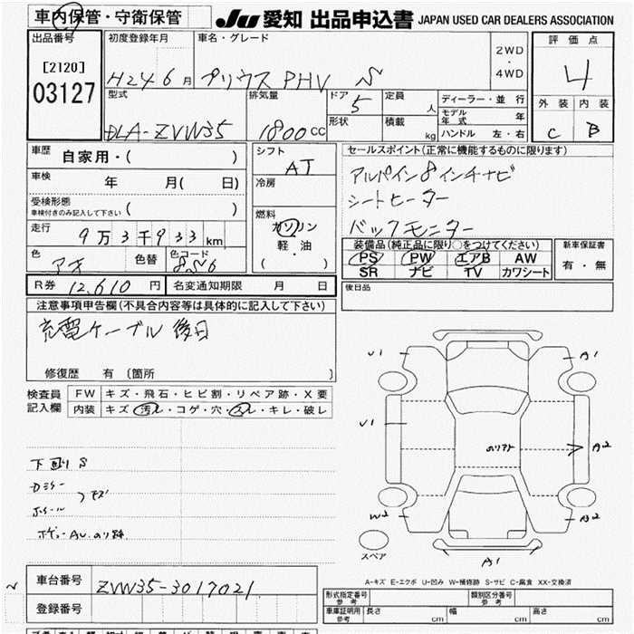 TOYOTA PRIUS PHV ZVW35 ZVW35 | 2012 год