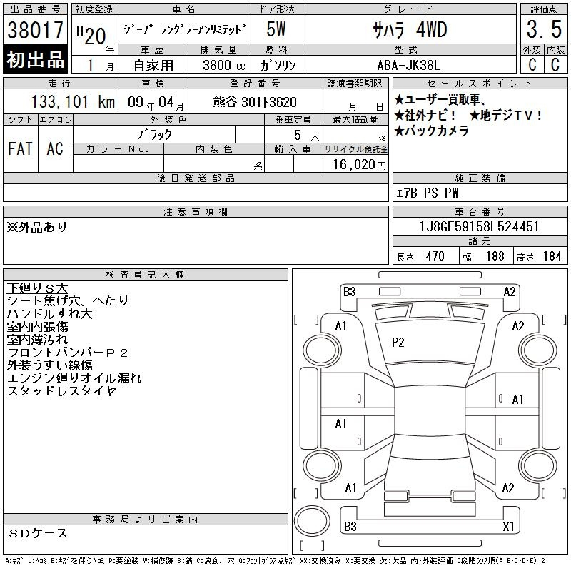 CHRYSLER JEEP WRANGLER JK38L JK38L | 2008 год