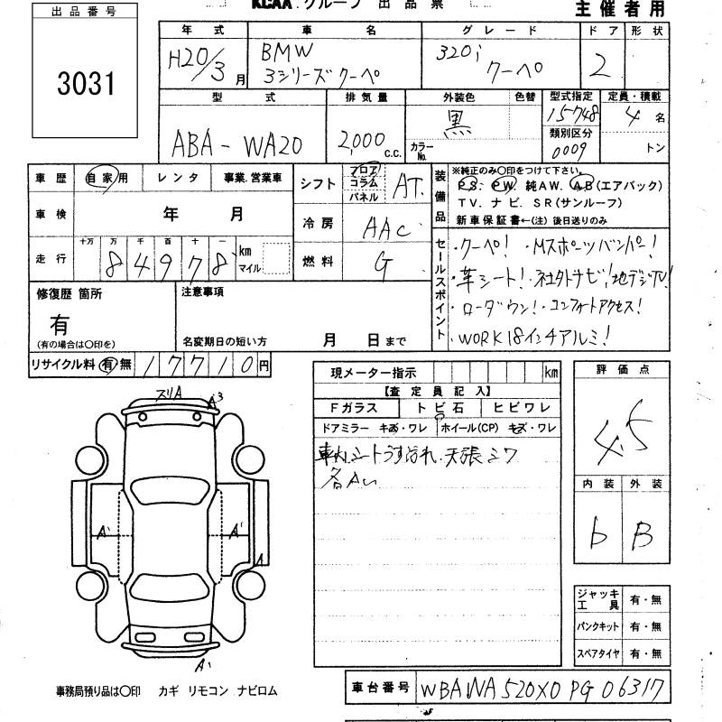Еще фото Написать в Whatsapp Online Написать в Telegram Мы открыты Позвонить Мы открыты ARAI Bayside Аукцион 43063 Лот Sold Статус В корзину BMW 3 SERIES WA20 Год: 2008 Объём: 2000 сс КПП: F6 Пробег: 220 000 км Привод: FR Комплект.: AAC Мощность: 156 л.с. Цвет: white Год: 2008 Объём: 2000 сс КПП: F6 Пробег: 220 000 км 1 477 023 ₽ Цена под Ключ Составляющие цены