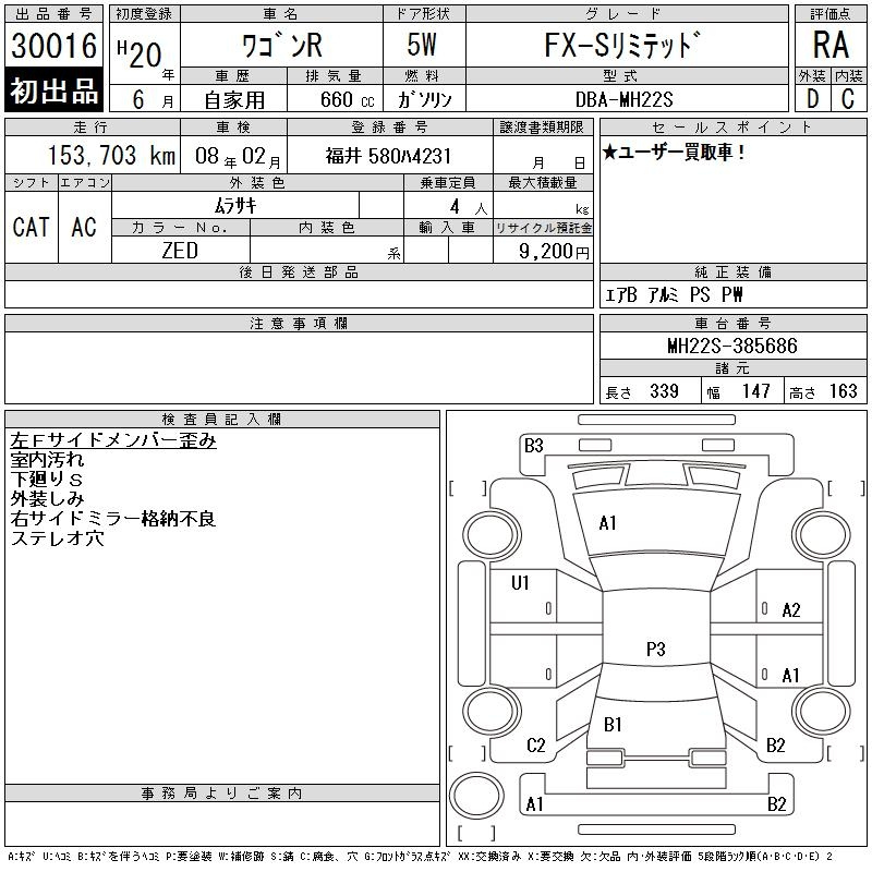 SUZUKI WAGON R MH22S MH22S | 2008 год