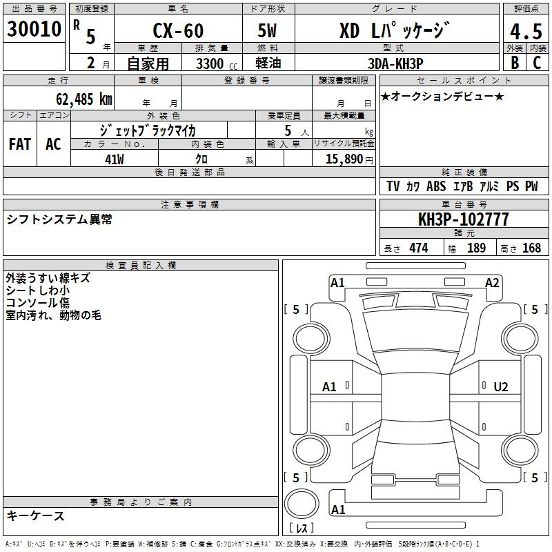 Еще фото Написать в Whatsapp Online Написать в Telegram Мы открыты Позвонить Мы открыты ARAI Bayside Аукцион 2447 Лот Sold Статус В корзину MAZDA CX-60 KH3P Год: 2023 Объём: 3280 сс КПП: FAT Пробег: 43 000 км Привод: Комплект.: AAC Мощность: Цвет: black Год: 2023 Объём: 3280 сс КПП: FAT Пробег: 43 000 км 4 881 940 ₽ Цена под Ключ Составляющие цены