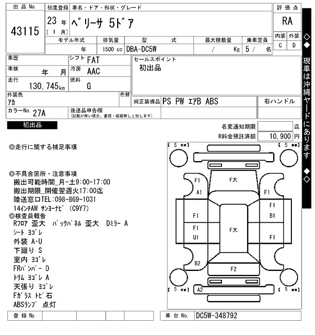 MAZDA VERISA DC5W DC5W | 2011 год