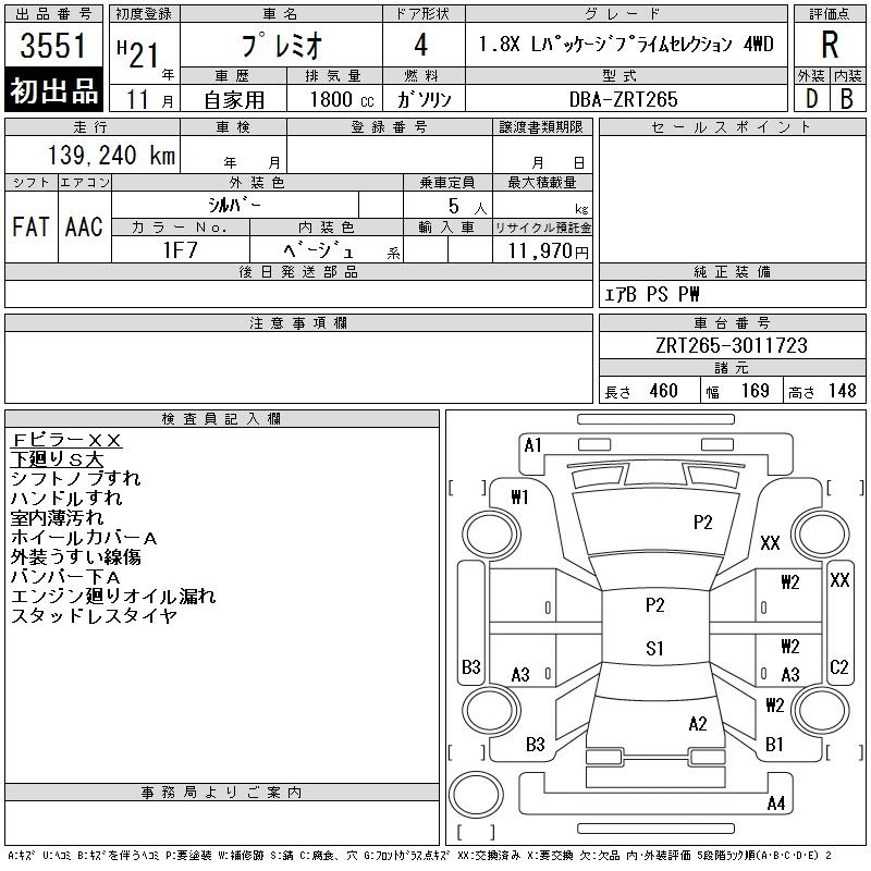 TOYOTA PREMIO ZRT265 ZRT265 | 2009 год
