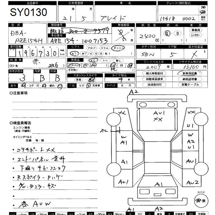 TOYOTA BLADE AZE154H AZE154H | 2009 год
