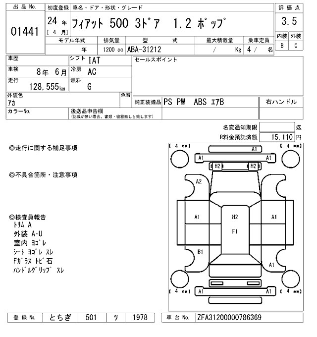 FIAT 500 31212 31212 | 2012 год