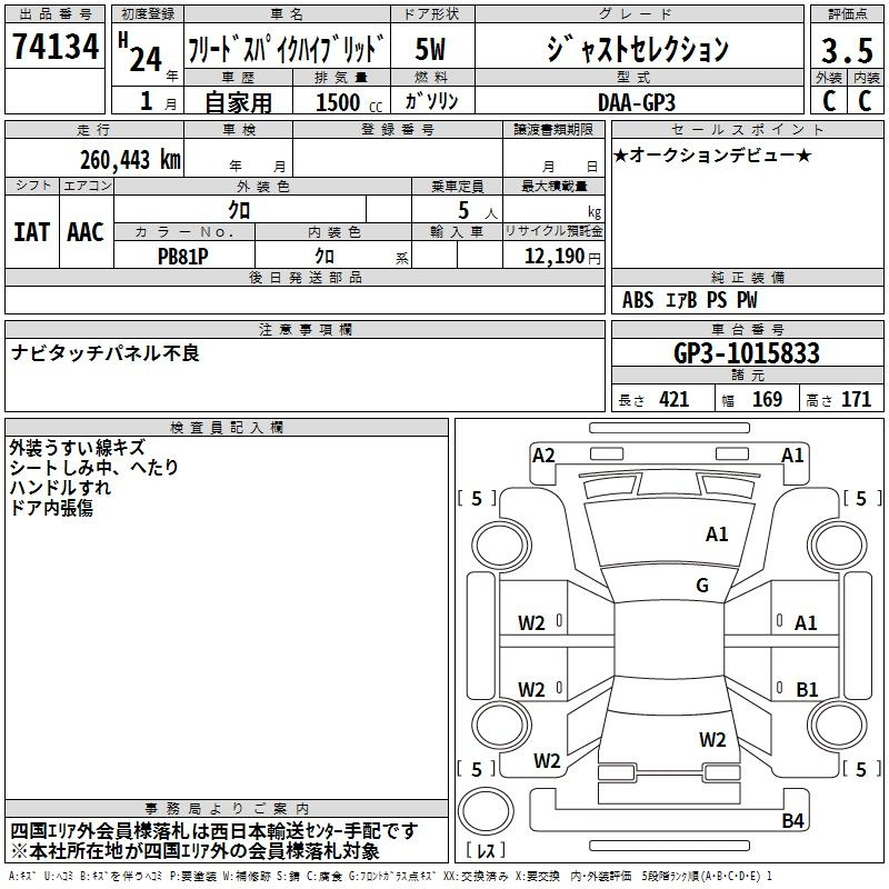 HONDA FREED GP3 GP3 | 2012 год