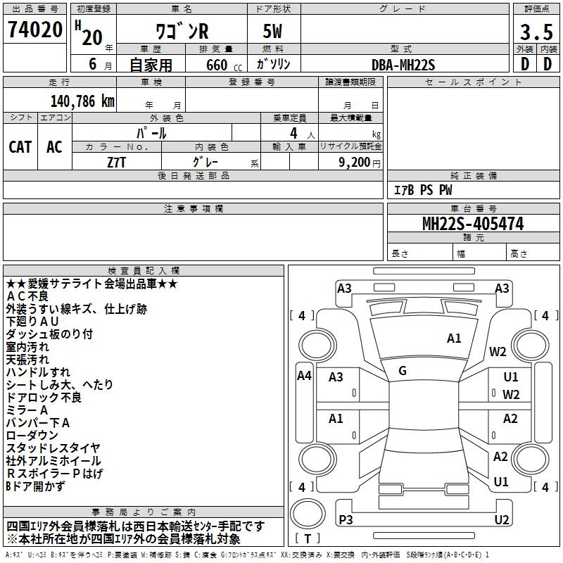 Еще фото Написать в Whatsapp Online Написать в Telegram Мы открыты Позвонить Мы открыты TAA Chubu Аукцион 77115 Лот Sold Статус В корзину SUZUKI WAGON R MH22S Год: 2008 Объём: 660 сс КПП: CAT Пробег: 90 000 км Привод: FF,FULLTIME4WD Комплект.: AC Мощность: 54 л.с. Цвет: wine Год: 2008 Объём: 660 сс КПП: CAT Пробег: 90 000 км 435 781 ₽ Цена под Ключ Составляющие цены