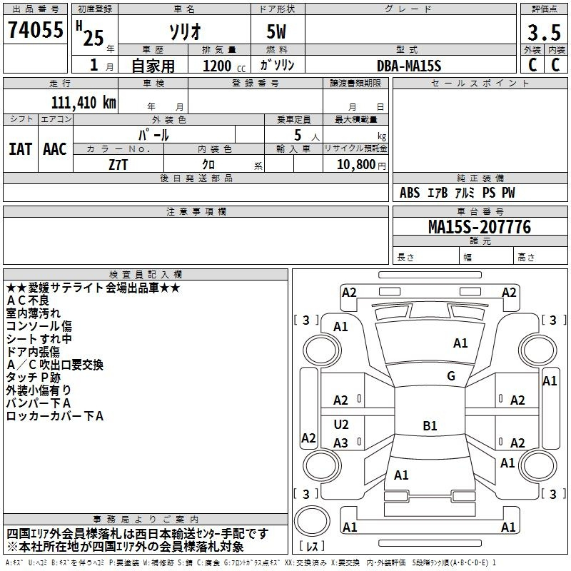 SUZUKI SOLIO MA15S MA15S | 2013 год