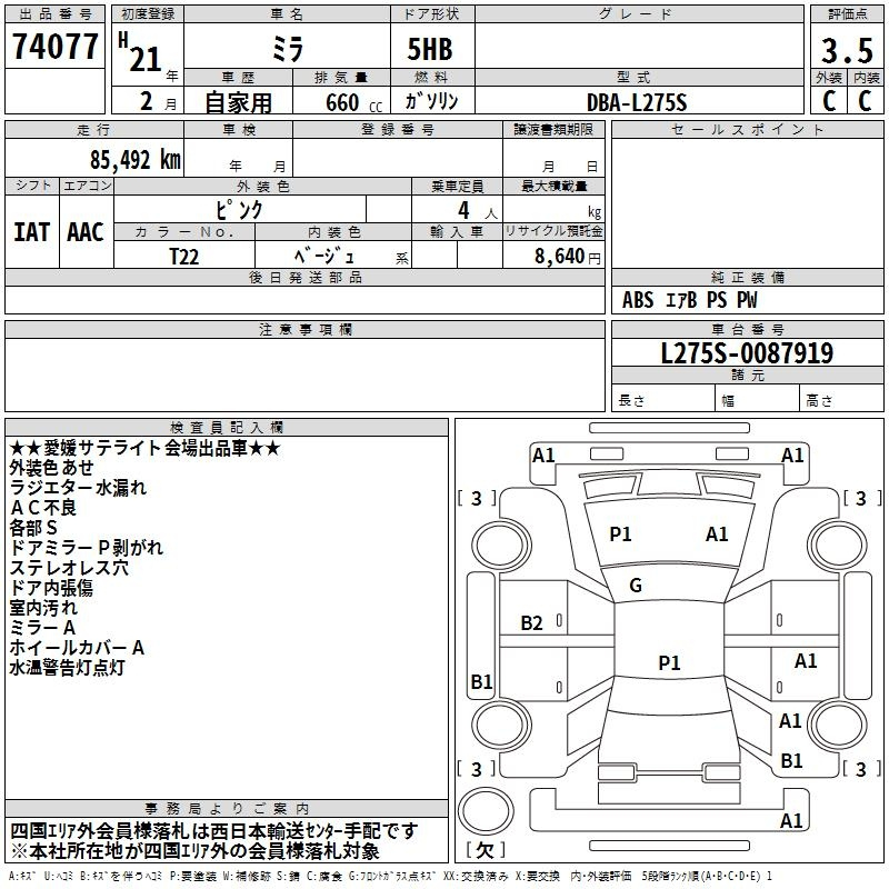 DAIHATSU MIRA L275S L275S | 2009 год