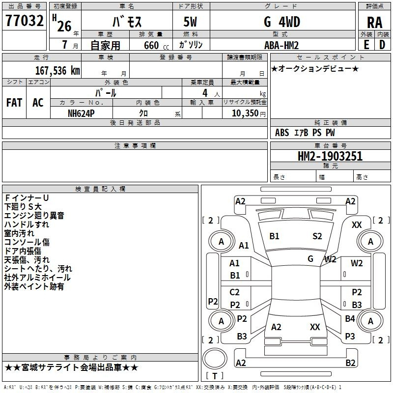 HONDA VAMOS HM2 HM2 | 2014 год