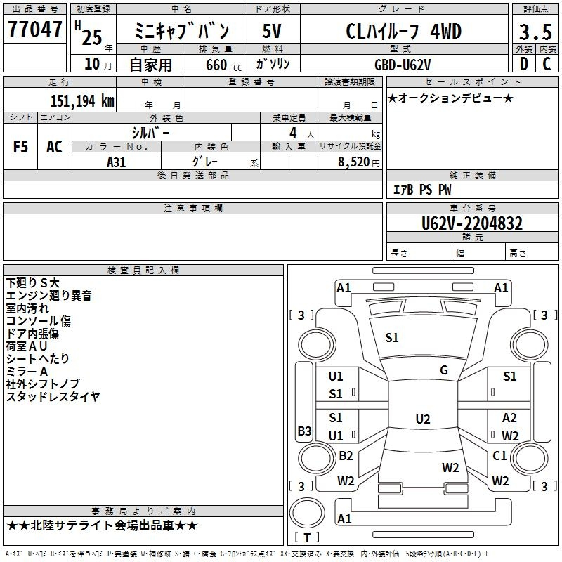 MITSUBISHI MINICAB VAN U62V U62V | 2013 год