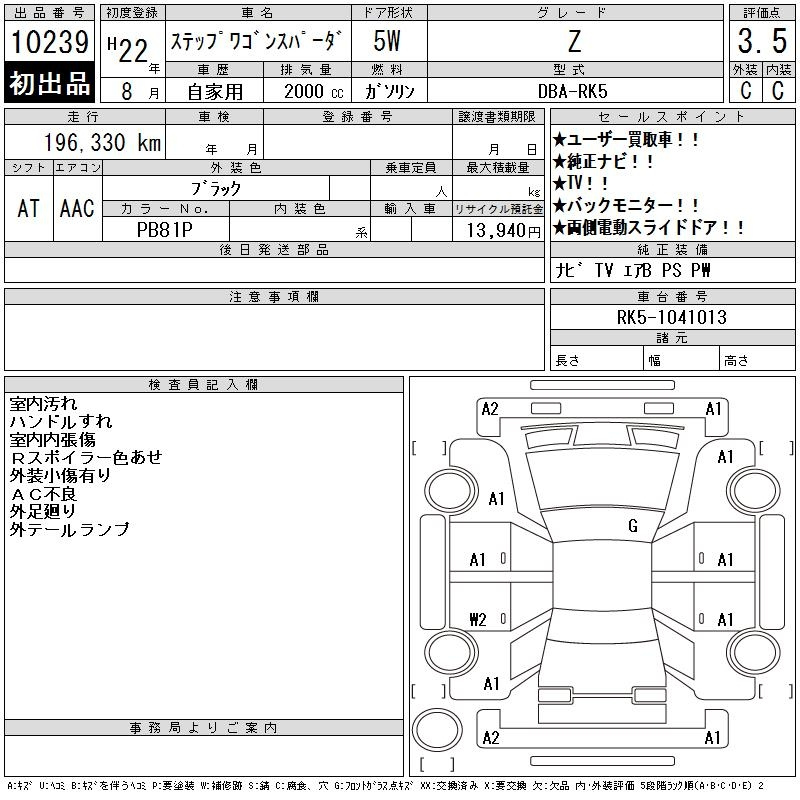 HONDA STEP WAGON RK5 RK5 | 2010 год