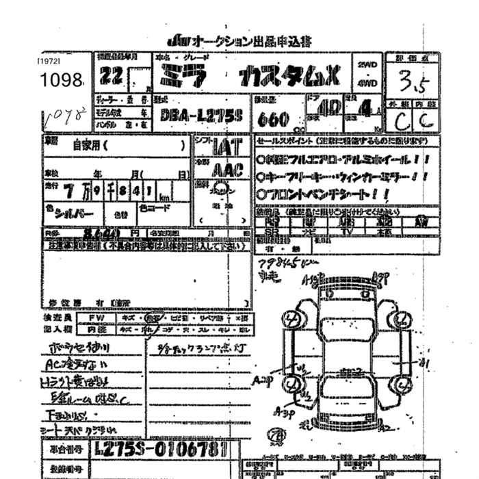 Еще фото Написать в Whatsapp Online Написать в Telegram Мы открыты Позвонить Мы открыты JU Okinawa Аукцион 1039 Лот Sold Статус В корзину DAIHATSU MIRA L275S Год: 2012 Объём: 660 сс КПП: AT Пробег: 109 000 км Привод: FF Комплект.: AC Мощность: 58 л.с. Цвет: white Год: 2012 Объём: 660 сс КПП: AT Пробег: 109 000 км 425 308 ₽ Цена под Ключ Составляющие цены
