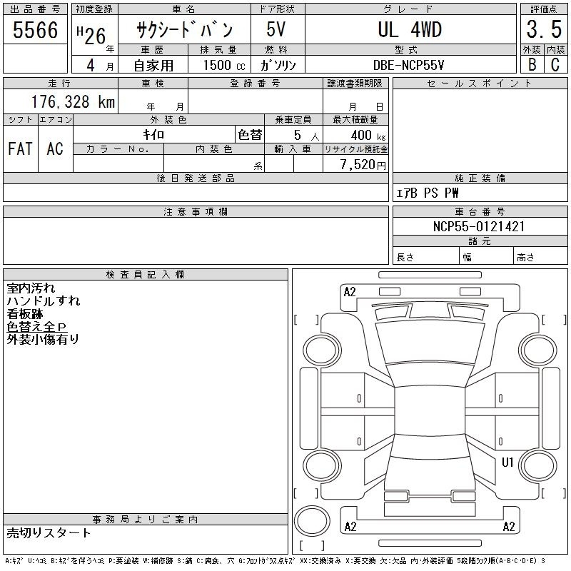 TOYOTA SUCCEED NCP55V NCP55V | 2014 год