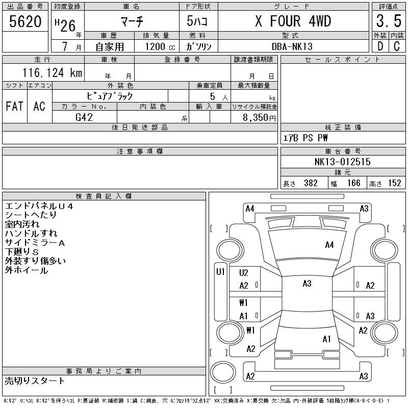 NISSAN MARCH NK13 NK13 | 2014 год